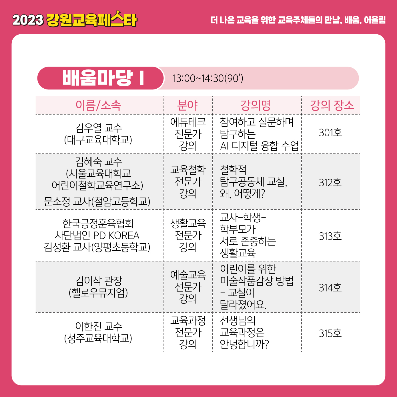 ◦ 배 움 마 당: 교원대상 전문가 강연, 연구회 사례 나눔