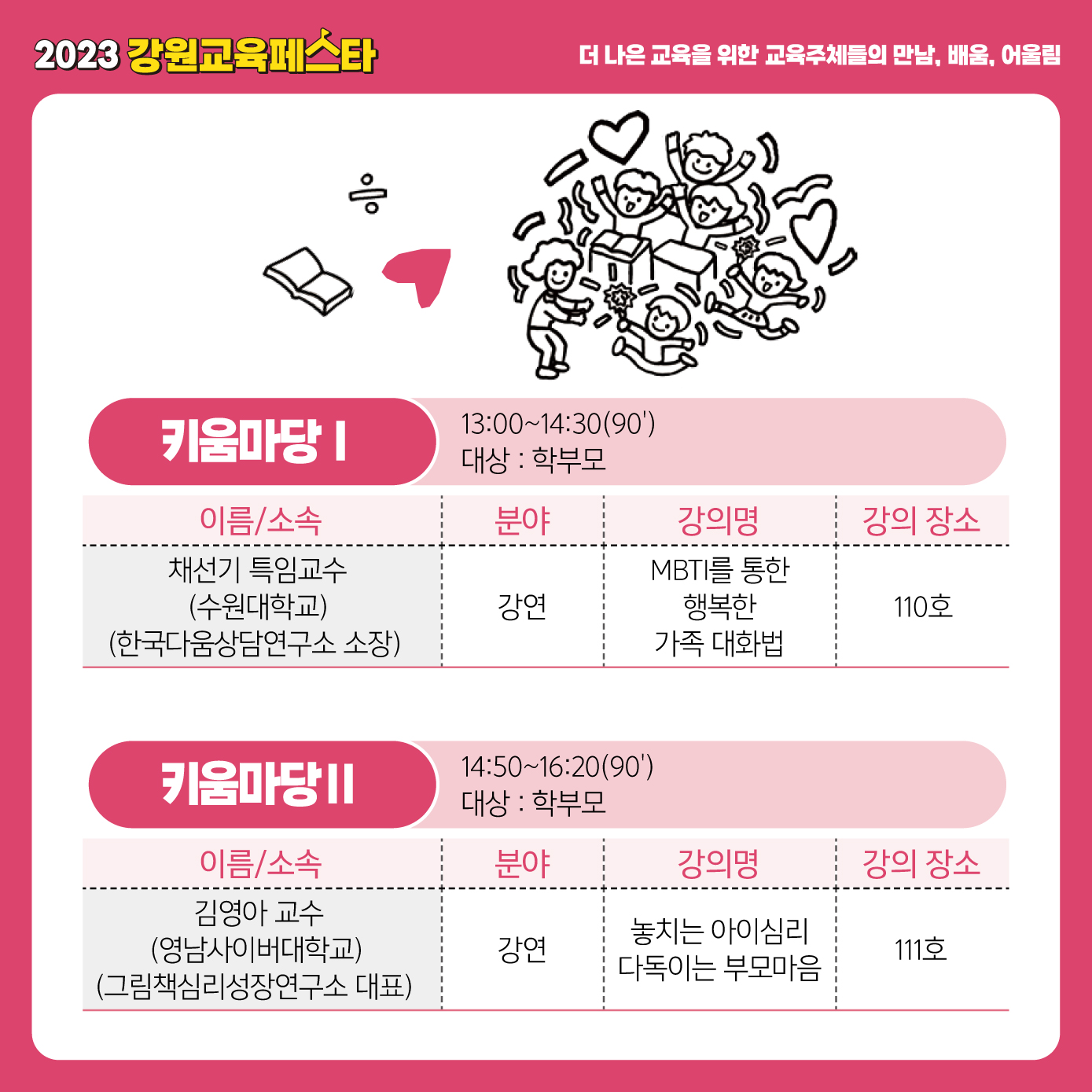 ◦ 키 움 마 당: 부모 자녀간의 건강한 관계 형성을 위한 학부모 특강