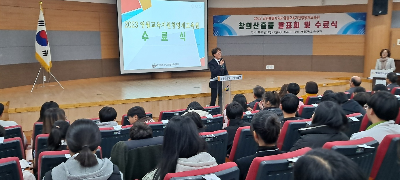 □ 강원특별자치도영월교육지원청 부설 영재교육원(원장 김영언)은 11월 23일 목요일 ‘2023학년도 영월영재교육원 창의산출물 발표 및 수료식’을 개최하였다.