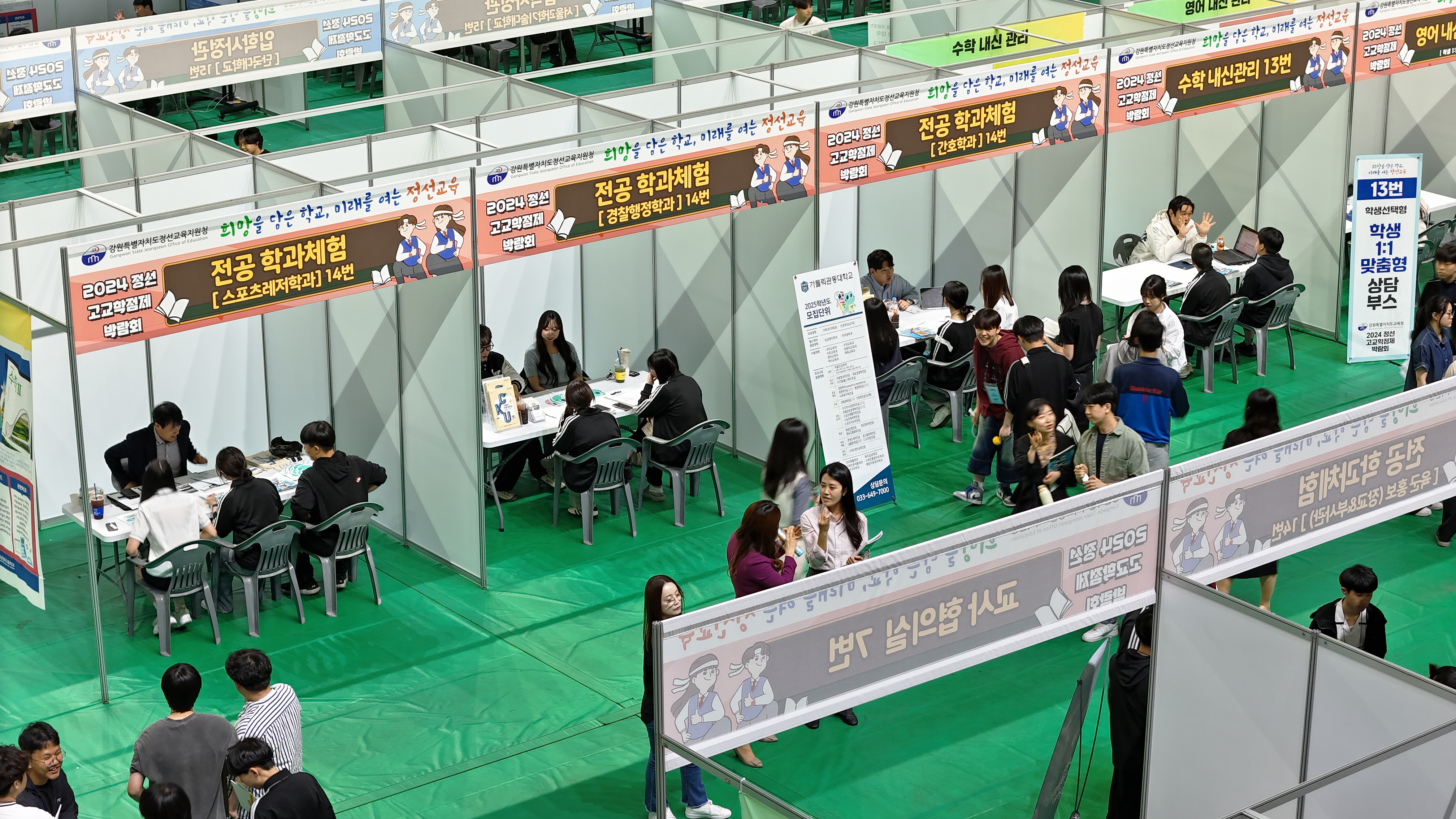 □ 학생들의 희망 계열에 따른 상담을 통한 학업설계 지도, 수도권 및 강원도내 9개 대학의 입학사정관과 진학전문지원관의 1:1 개인 심화상담, 대학 전공체험 부스를 통해 학생 개인별 맞춤형 진로·진학 상담이 운영되었다.