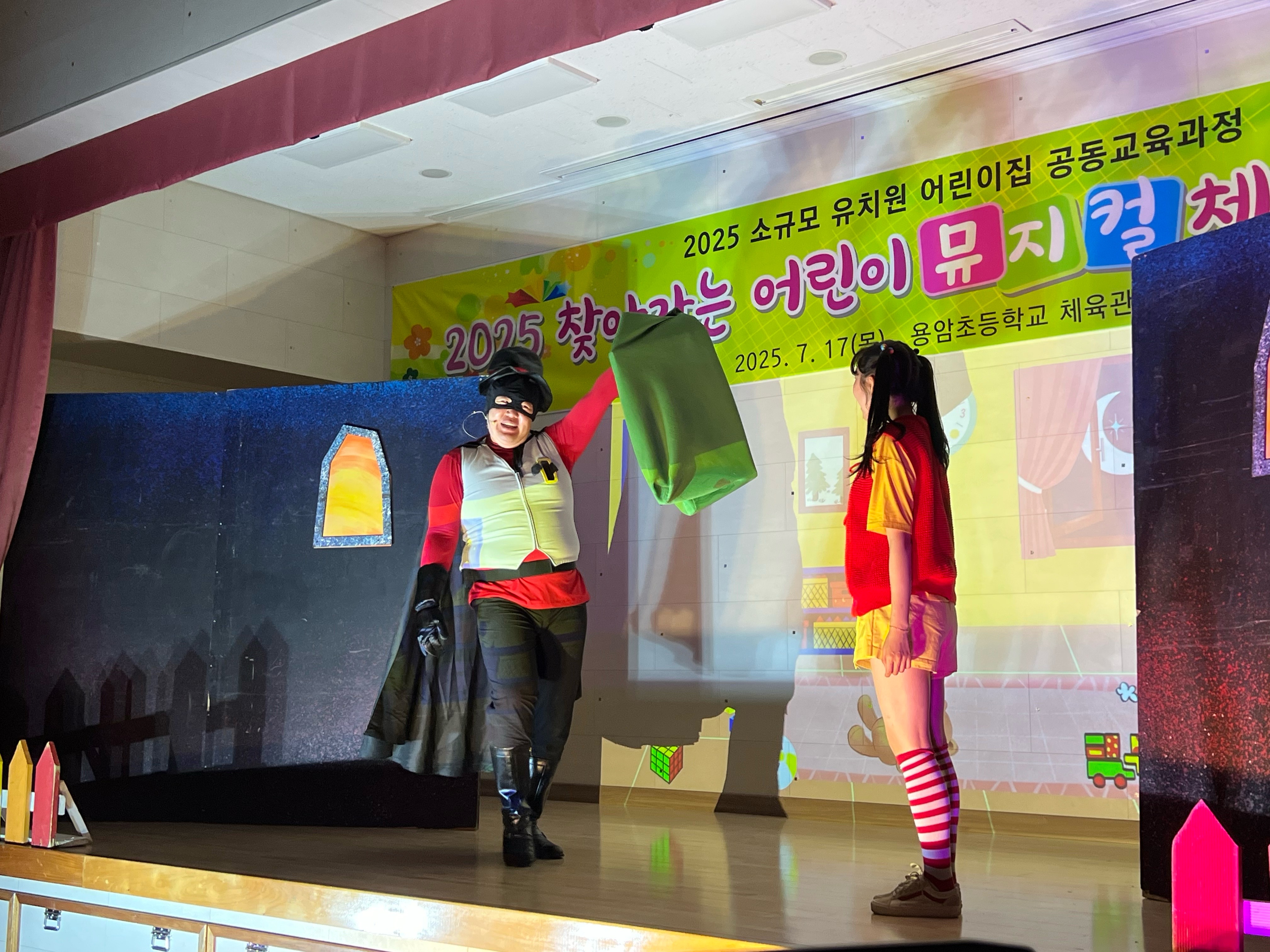 화천교육지원청(교육장 문영숙)은 7월 17일, 용암초등학교에서 공동교육과정 시범사업 대상인 유치원, 어린이집 영유아를 대상으로 공동교육과정을 운영하였다.이번 프로그램은 유치원-어린이집 공동교육과정 운영을 통한 유보통합 시범 사업으로 마련되었으며 어린이집, 유치원, 초등학생 총 30여 명이 함께하는 찾아가는 뮤지컬 체험 프로그램으로 운영되었다.화천교육지원청은 어린이집-유치원 공동교육과정을 통한 교육과정을 내실화하고, 어린이집-유치원 교사 공동연수를 운영함으로써 교사의 전문성을 향상하여 영유아 보육 및 교육의 새로운 모델을 만들고 있다.문영숙 교육장은 “저출산으로 인한 인구절벽과 지역 소멸 위기의 시대에, 소규모 교육기관의 공동교육과정을 통해 작지만 보다 알찬 영유아 보육 및 교육 서비스를 제공하고, 다가오는 교육부의 유보통합 정책 추진 준비에 만전을 기할 것”이라고 밝혔다.