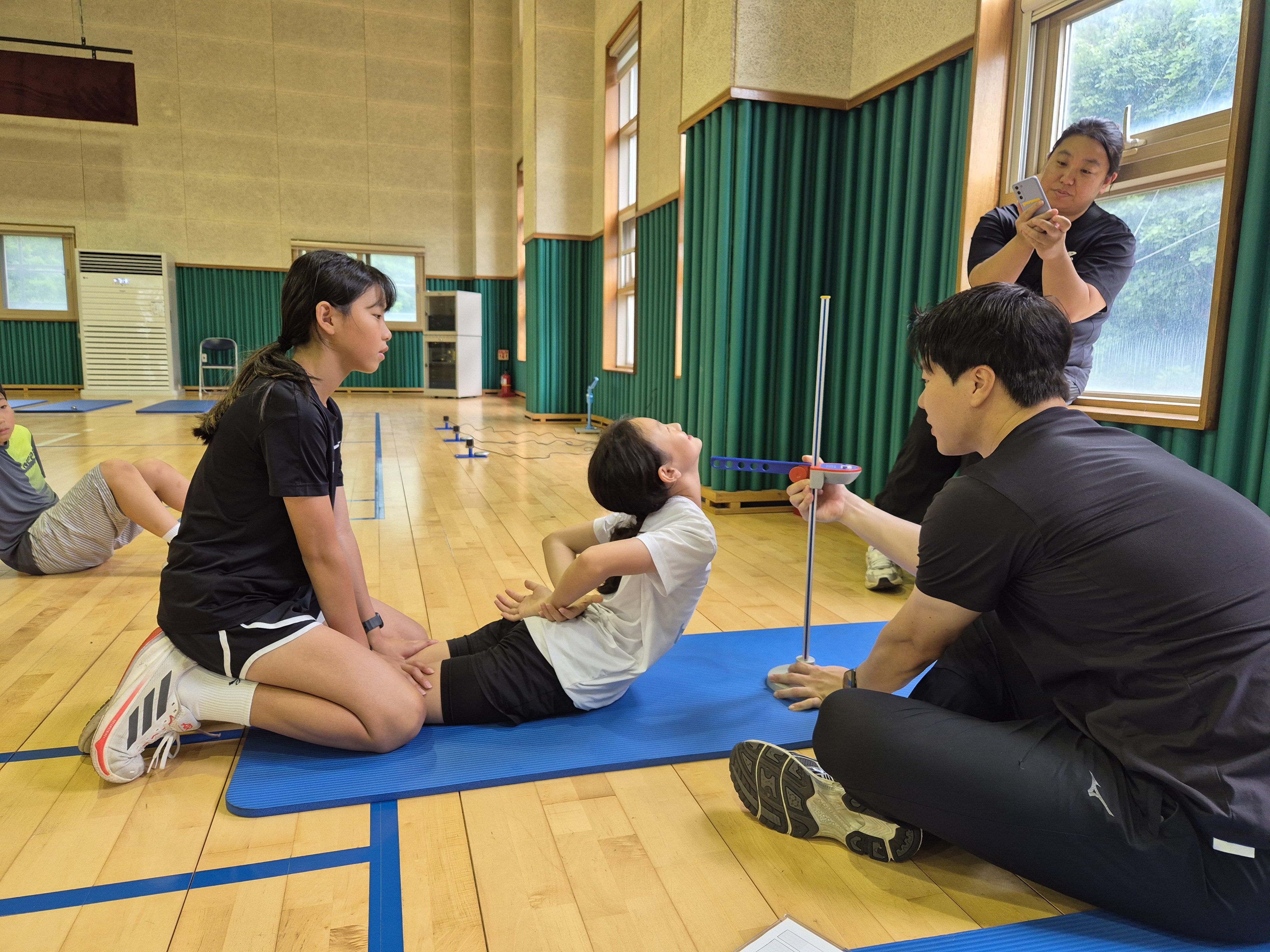 화천교육지원청에서는 2025. 7. 21.(월) ~ 22.(화) 양일 간 관내 규합종목인 수영과 육상의 학생 선수와 중학교 조정 선수들을 대상으로 강원학생스포츠센터 교육을 실시하였다. 총 39명의 학생들이 참여한 이번 교육은 트레이닝 방법론과 부상 예방 스포츠테이핑 교육, 스포츠과학 프로그램인 체력측정으로 구성되었다. 각 분야의 전문가의 이론 및 실습 교육을 통해 학생들이 자기 종목에 필요한 운동 방법과 자신에게 필요한 훈련 등을 알 수 있는 좋은 기회였다. 화천교육지원청은 강원학생스포츠센터의 다양한 프로그램을 통해 학생 선수들에게 도움을 주는 이러한 행사를 지속적으로 운영할 계획이다.