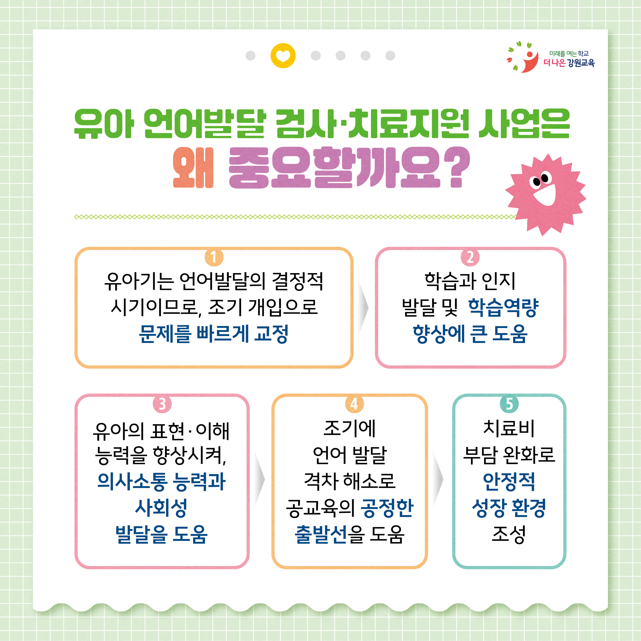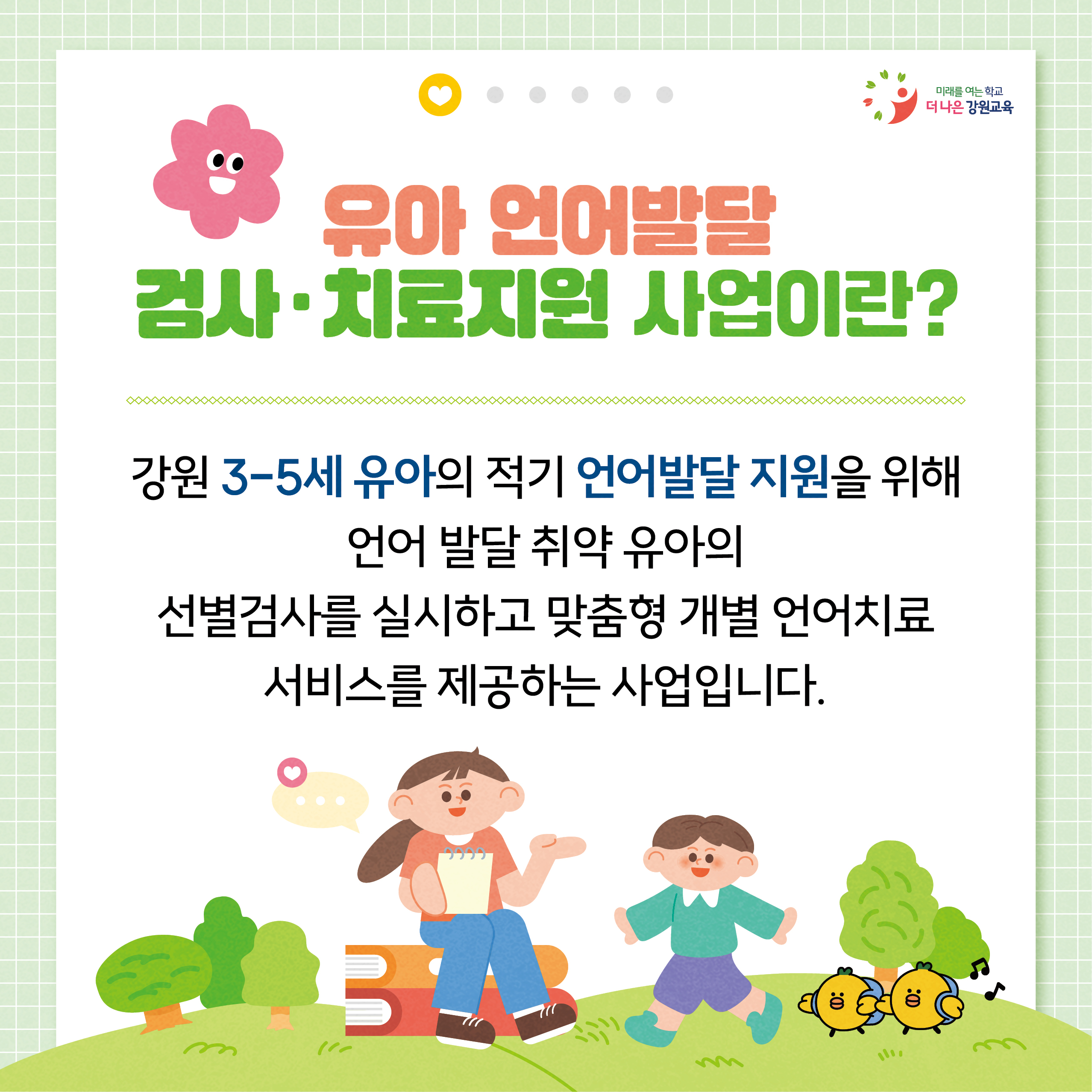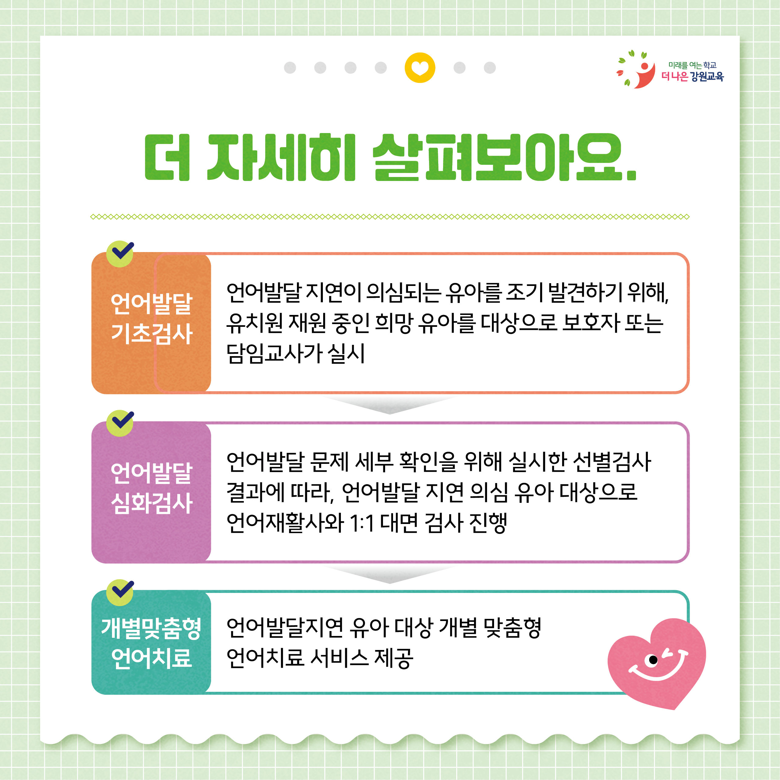 언어발달 검사와 치료 지원을 진행하고 있어요~