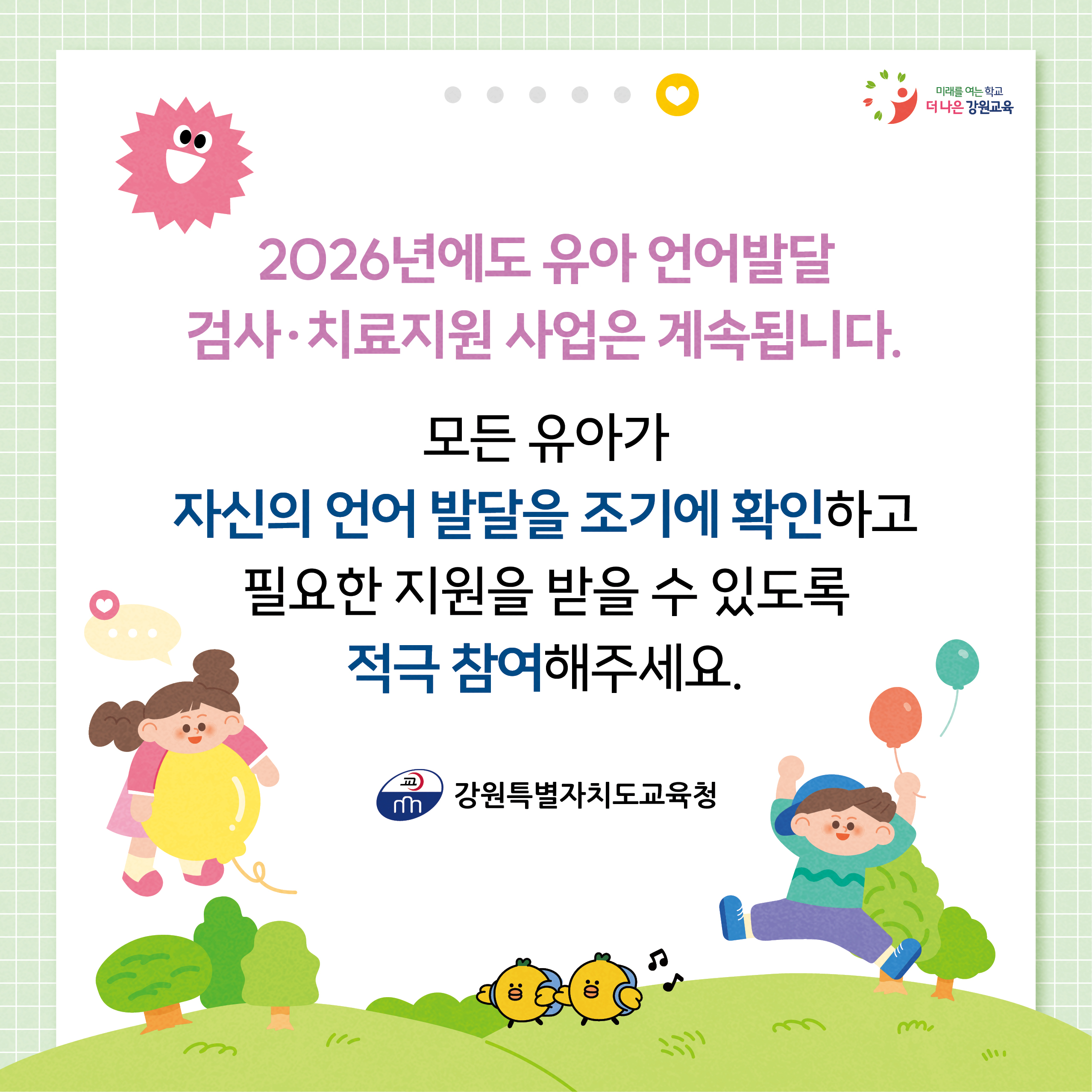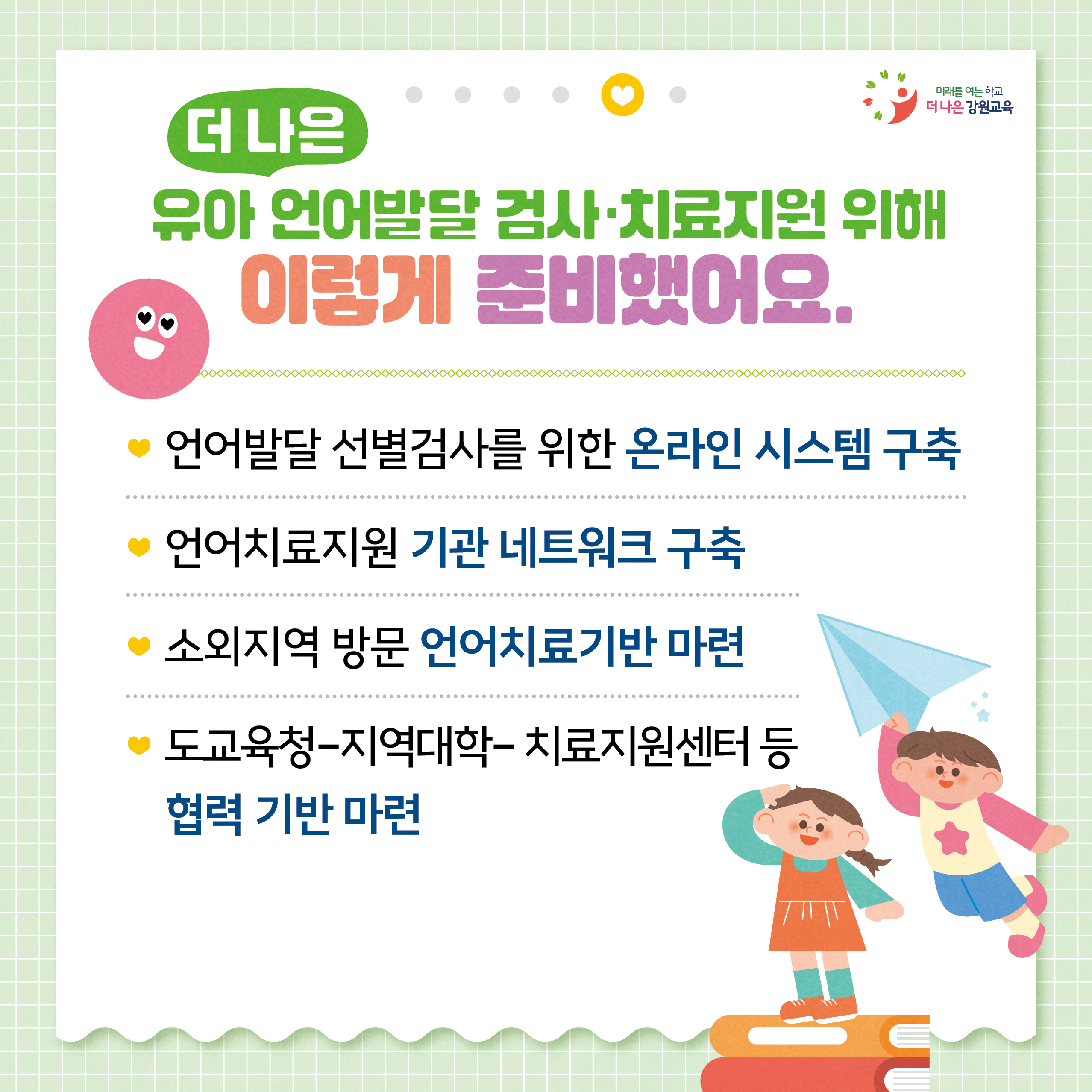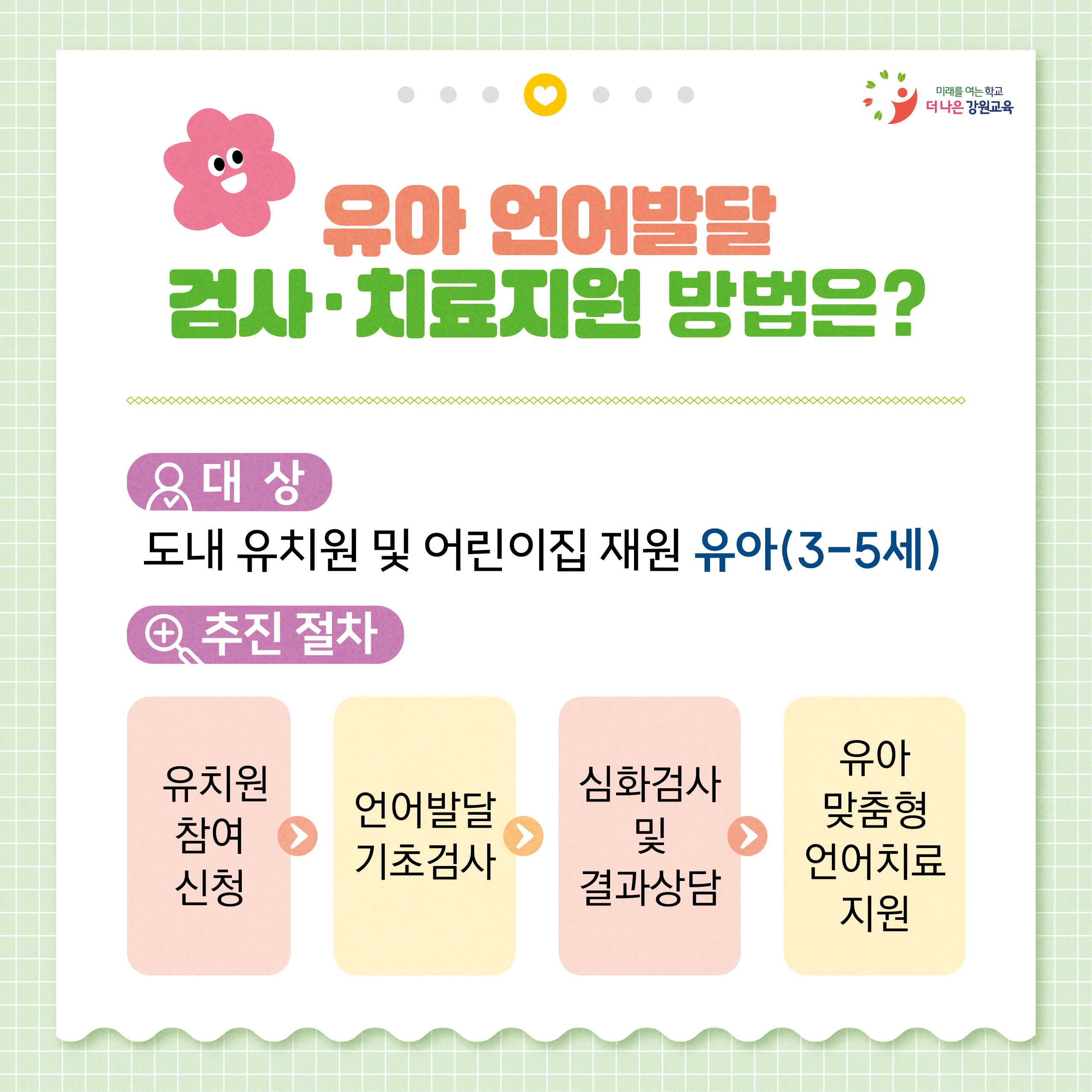 언어발달 검사와 치료 지원을 진행하고 있어요~